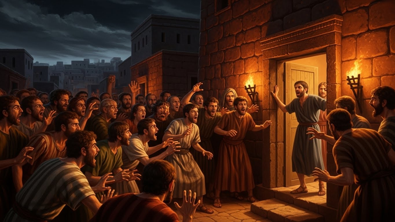 “내게 남자를 가까이하지 아니한 두 딸이 있노라 청하건대 내가 그들을 너희에게로 이끌어 내리니 너희 눈에 좋은 대로 그들에게 행하고 이 사람들은 내 집에 들어왔은즉 이 사람들에게는 아무 일도 저지르지 말라”