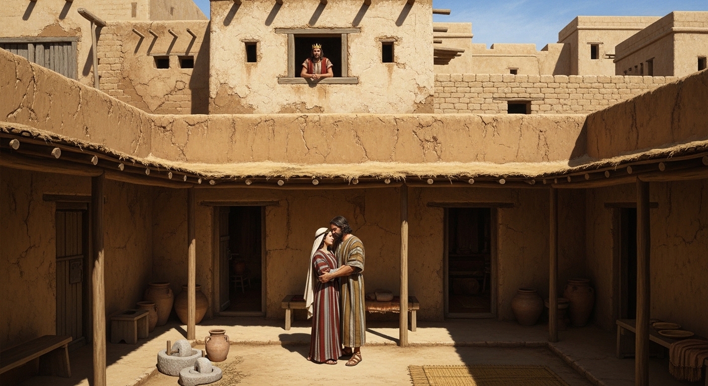 8 이삭이 거기 오래 거주하였더니 이삭이 그 아내 리브가를 껴안은 것을 블레셋 왕 아비멜렉이 창으로 내다본지라