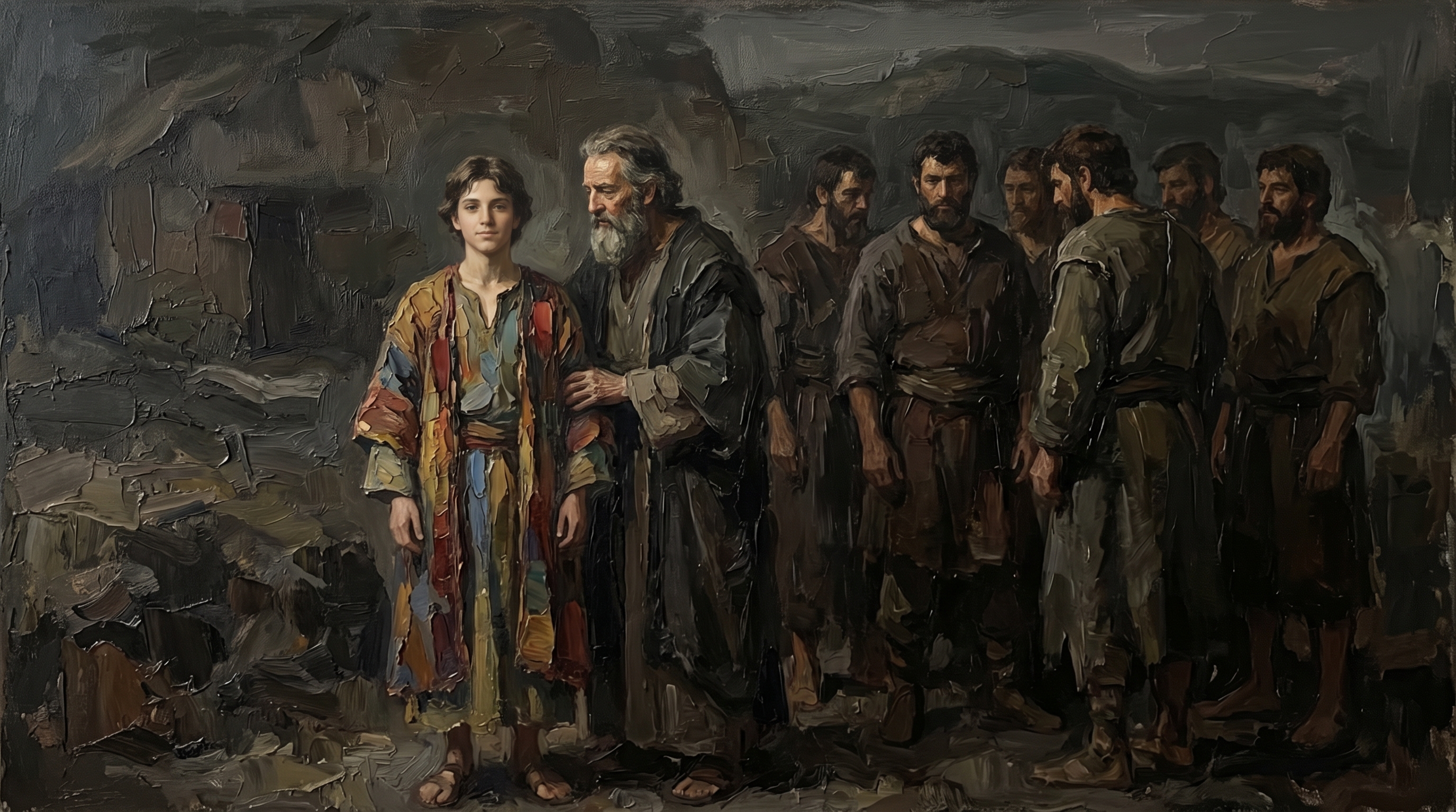 반면 요셉에게 채색옷을 입혔다는 것은 요셉에게는 일을 시키지 않았다는 의미이기도 합니다. 야곱은 요셉을 노년에 얻었기 때문에 다른 아들들보다 더 사랑했습니다.